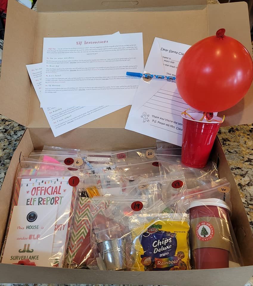 Elf Mischief Boxes are designed to alleviate the stress of keeping your Elf entertained for 24 days! Set-ups are simple, quick to assemble and great for children of any age. The activities are geared towards things for the Elf to do, so one box would be sufficient for each family, no matter how many kids!