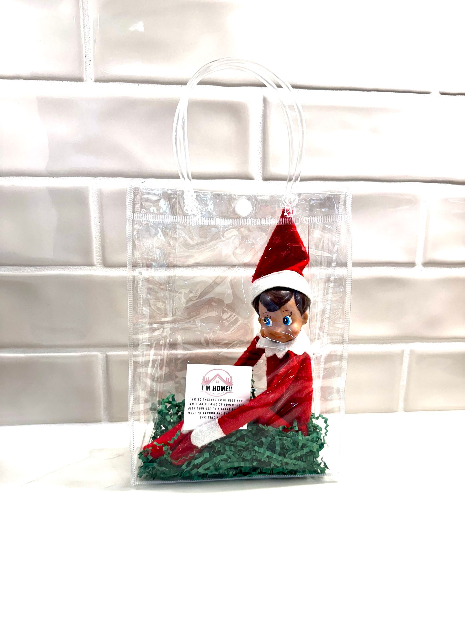 This year your Elf wants to be able to see new things and go fun places! Thank goodness he has this handy clear bag! Place him in the bag with his sign and close up the top. If you or the kids want to move him or take him places, he will be safe and ready to go!